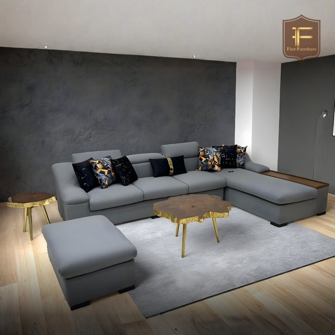 Elevate your living space with this stylish L-shaped sectional sofa. Upholstered in a sophisticated light grey fabric, this sofa features a right-side chaise for ultimate relaxation. The low-profile legs add a touch of modern elegance, making it a perfect fit for any contemporary home. Ideal for both residential and commercial settings, this sofa combines comfort and style effortlessly.